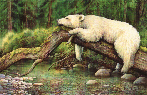 My daughter came up with the name for this piece, she felt that it looked like a lump of ice-cream on a log. A la Mode you might say. For more info on the Kermode bear look on my bio page or go directly to bearfacts.htm